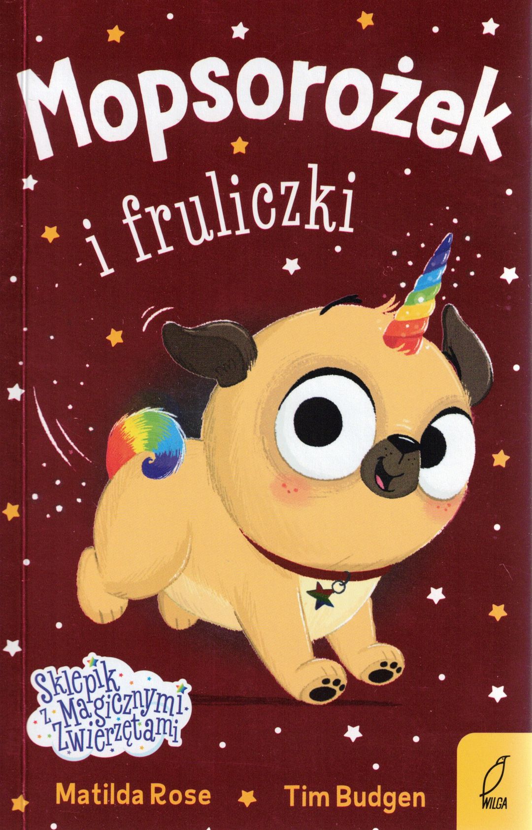 Mopsorożek i fruliczki / Matilda Rose , [ilustracje] Tim Budgen ; przełożyła Kaja Makowska. - Wydanie I. - Warszawa : Wilga, 2025. - 157, [3] strony : ilustracje ; 20 cm.